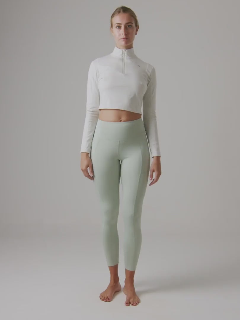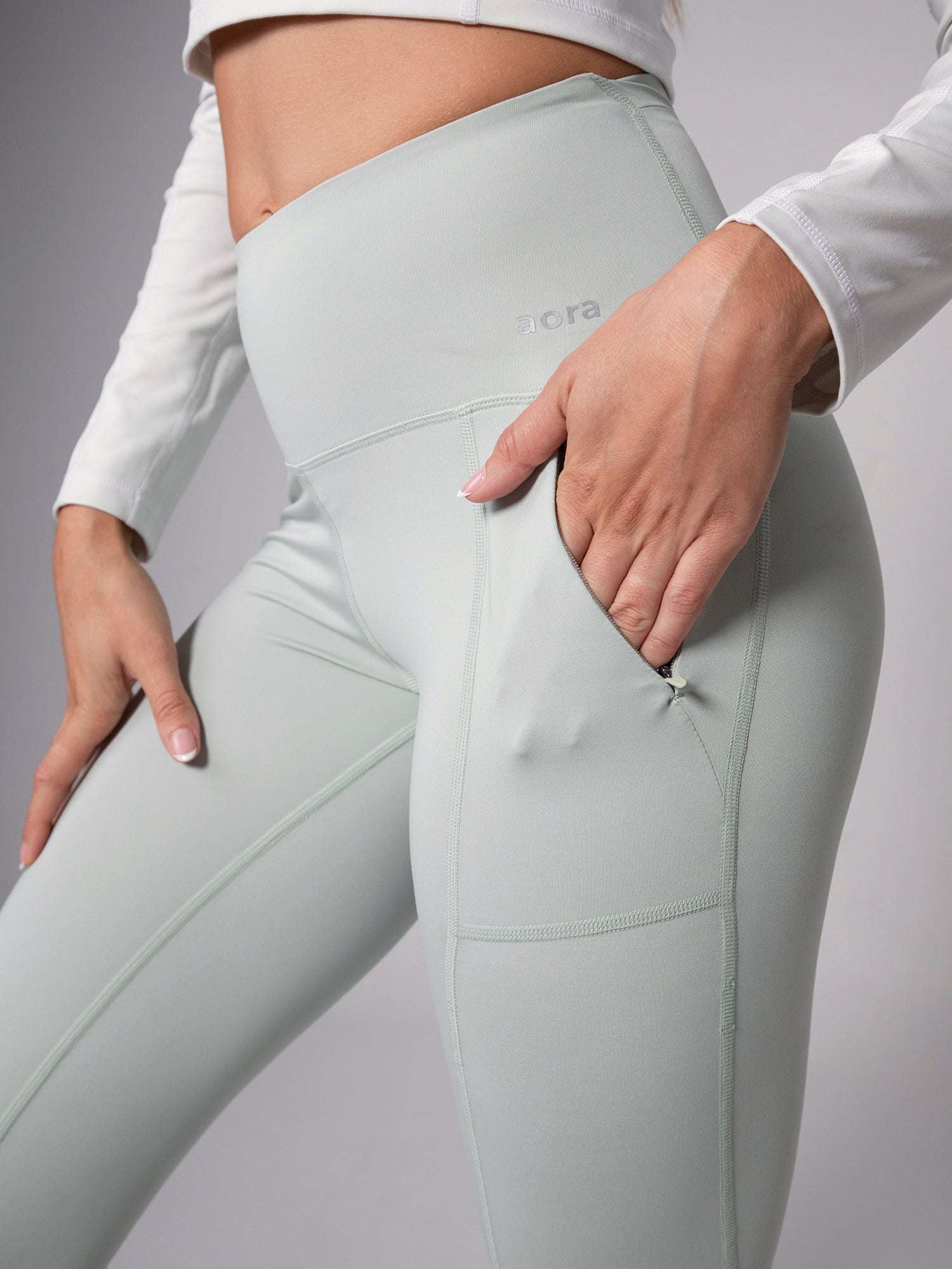AORA emphasizes durable, breathable, and flexible fabrics in its designs evident in its use of moisture-wicking materials that enhance comfort, flexibility, and longevity.