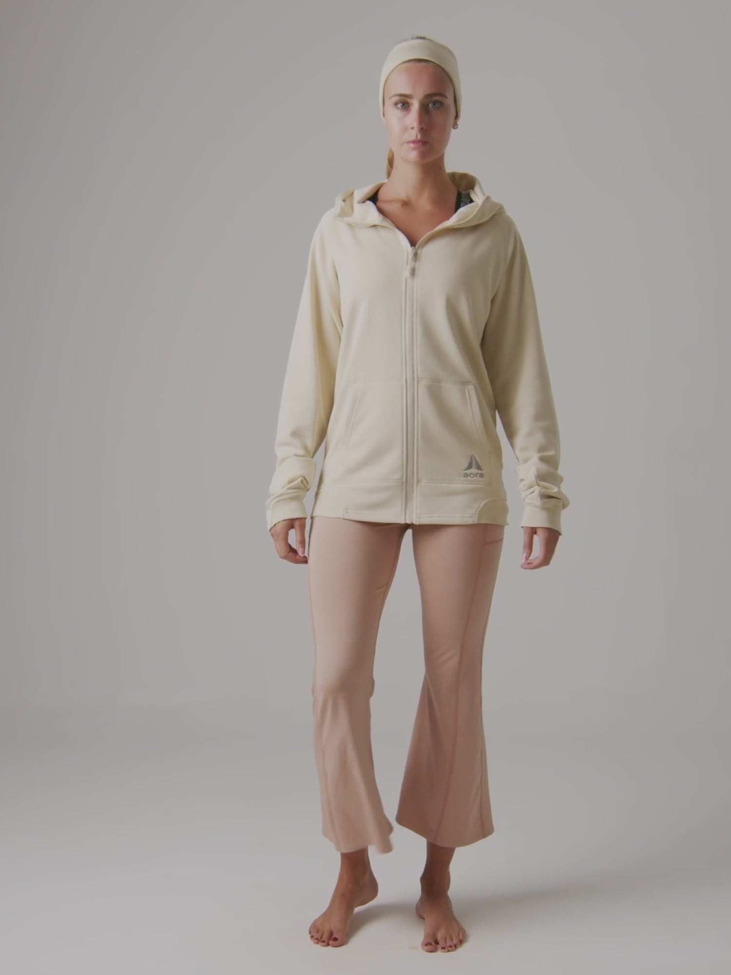 AORA emphasizes durable, breathable, and flexible fabrics in its designs evident in its use of moisture-wicking materials that enhance comfort, flexibility, and longevity.