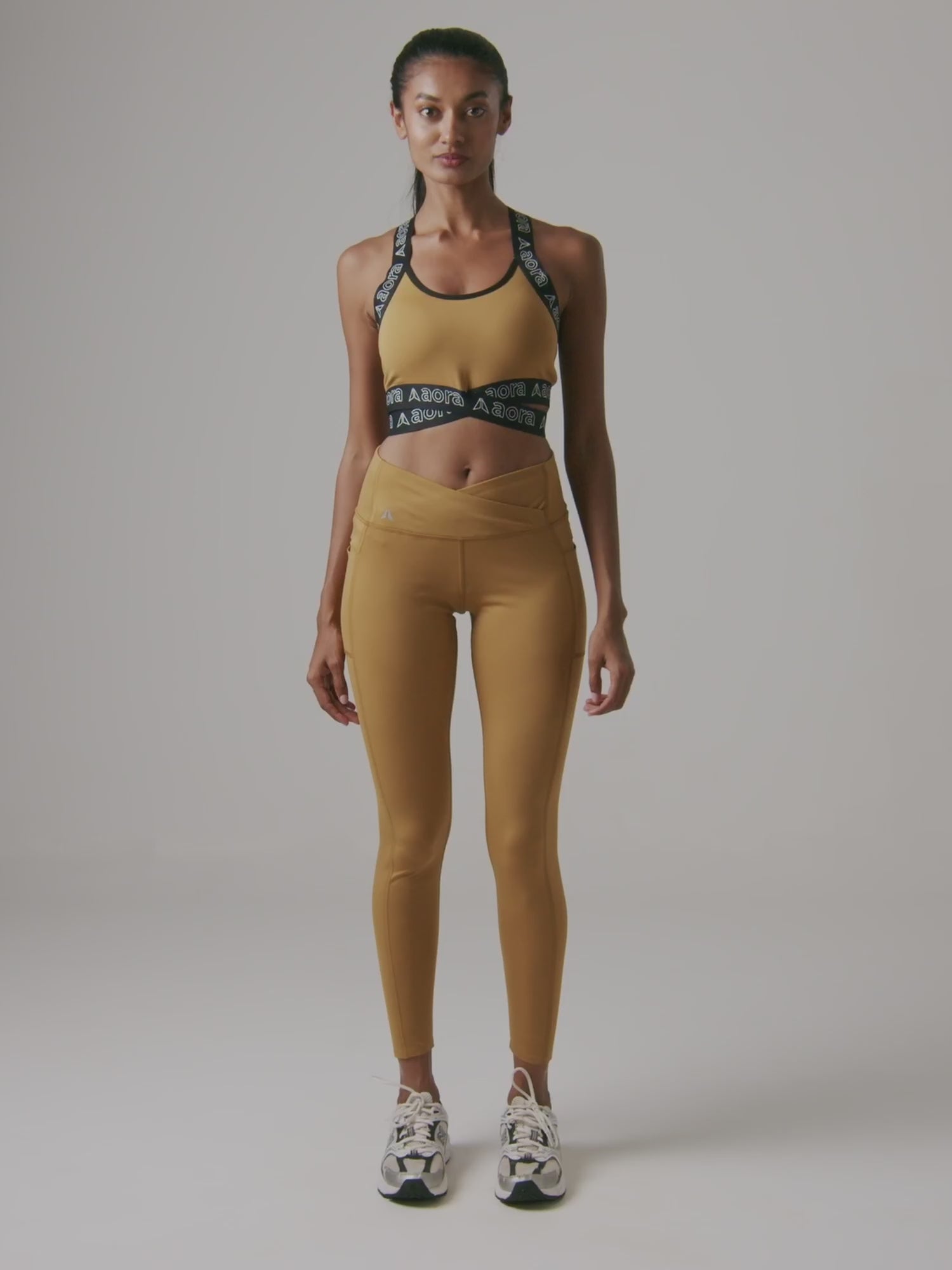 AORA emphasizes durable, breathable, and flexible fabrics in its designs evident in its use of moisture-wicking materials that enhance comfort, flexibility, and longevity.